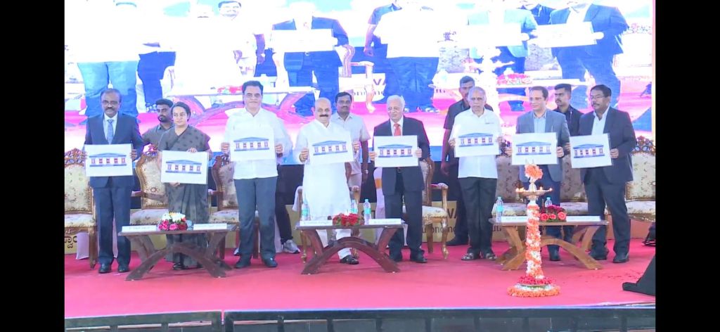 Higher Education Minister Dr C N Ashwathanarayana, UVCE BoG Chairman Muthuraman, UVCE Development Committee Chairman Dr Sadagopan, Principal Secretary of Higher Education Department Rashmi Mahesh, Principal Secretary to Chief Minister and UVCE Alumnus Manjunath Prasad and Principal Dr HN Ramesh were also present on the dias with other dignitaries.